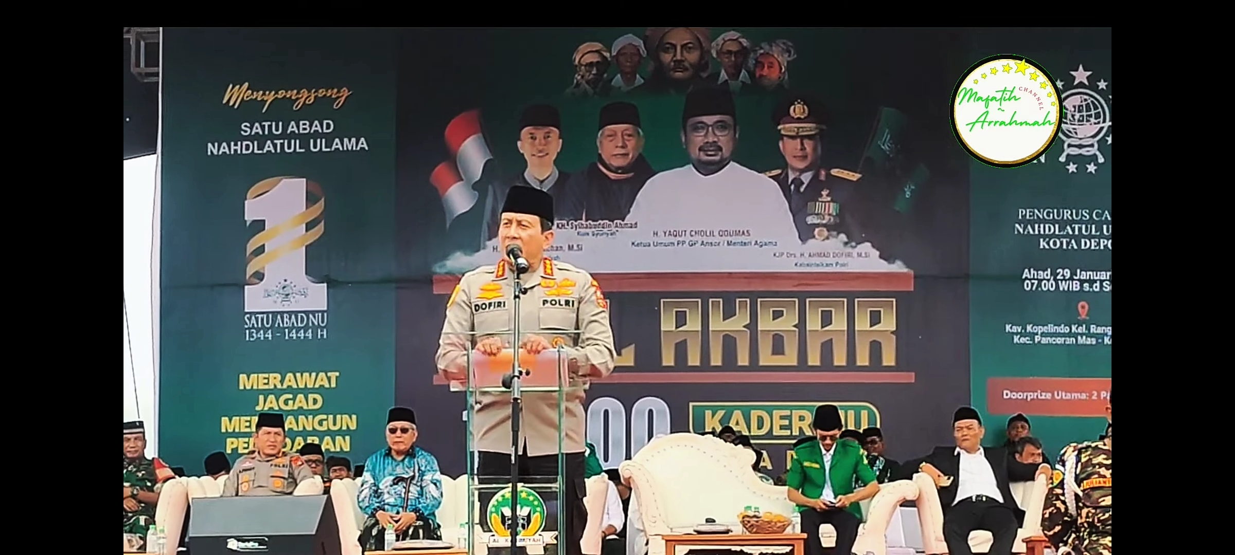 Dalam sambutannya, ia mengharapkan agar jamaah Nahdliyyin yang hadir bisa menerima keabsenan Kapolri yang terpaksa tidak hadir karena adanya tugas penting lainnya. Padahal kata Dofiri, Kapolri Listyo sejatinya ingin sekali hadir sendiri secara fisik dalam kegiatan yang baik itu.