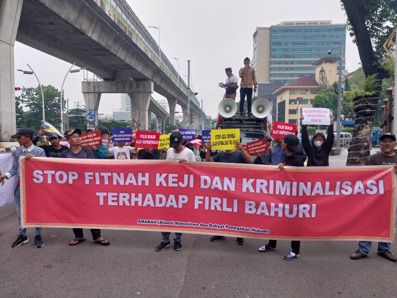 Jakarta – Ditetapkannya eks Ketua Komisi Pemberantasan Korupsi (KPK) Firli Bahuri sebagai tersangka kasus dugaan pemerasan eks Menteri Pertanian Syahrul Yasin Limpo (SYL) tidak menyurutkan gerakan pemberantasan korupsi. Hal ini menjadi semangat Aliansi Mahasiswa dan Rakyat Penegak Hukum (AMARAH) untuk menggelar aksi di Mabes Polri dengan tuntutan menolak kriminalisasi terhadap Firli Bahuri.