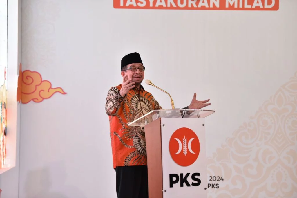 Jakarta — Ketua Majelis Syura PKS Dr. Salim Segaf Al-Jufri menyampaikan arahan pada acara Tasyakuran Milad ke-22 dan Halal Bi Halal PKS pada Sabtu, (27/4/2024) di Kantor DPTP PKS.