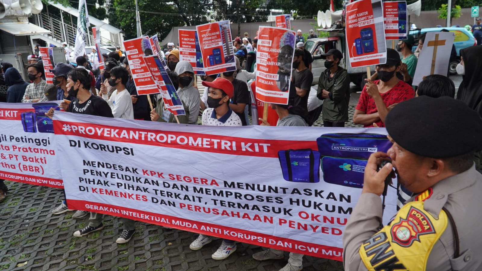 Aksi ini digelar sebagai bentuk desakan kepada KPK untuk segera menuntaskan pengusutan dugaan korupsi dalam proyek pengadaan antropometri kit Kementerian Kesehatan (Kemenkes) yang diduga merugikan negara hingga Rp427 miliar.